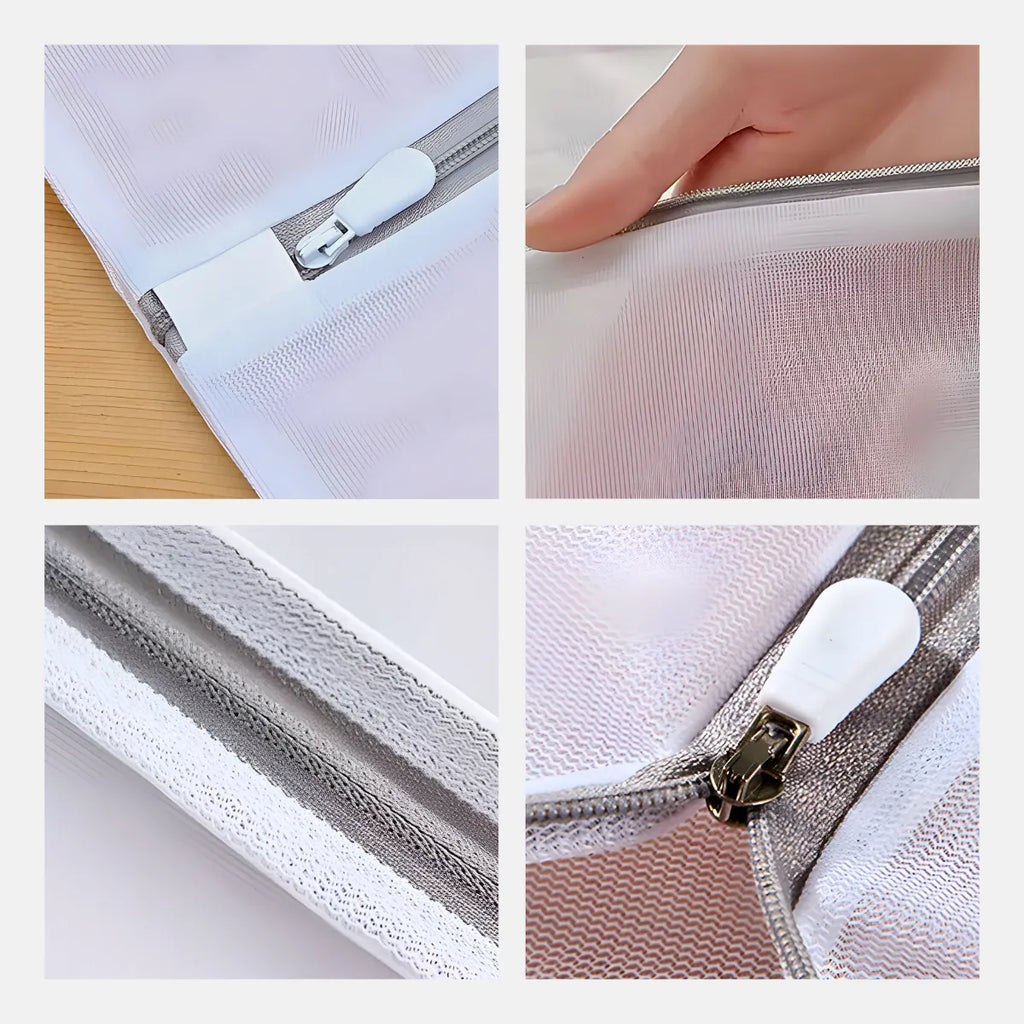 - Evita arranhões causados por zíperes ou detalhes metálicos na máquina de lavar.