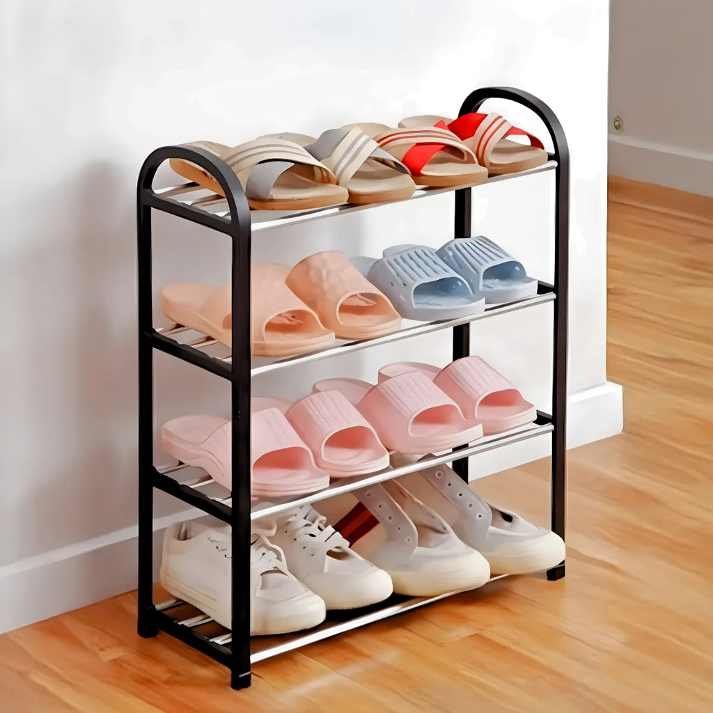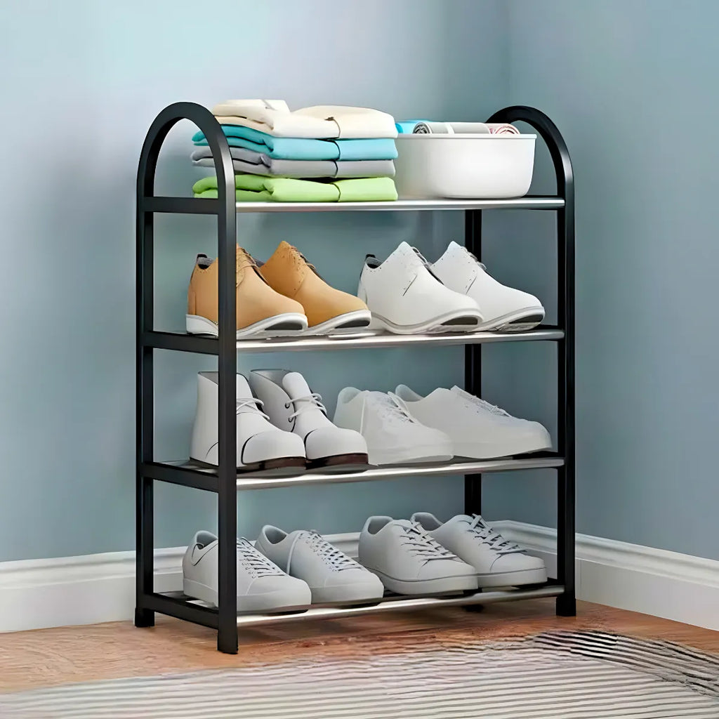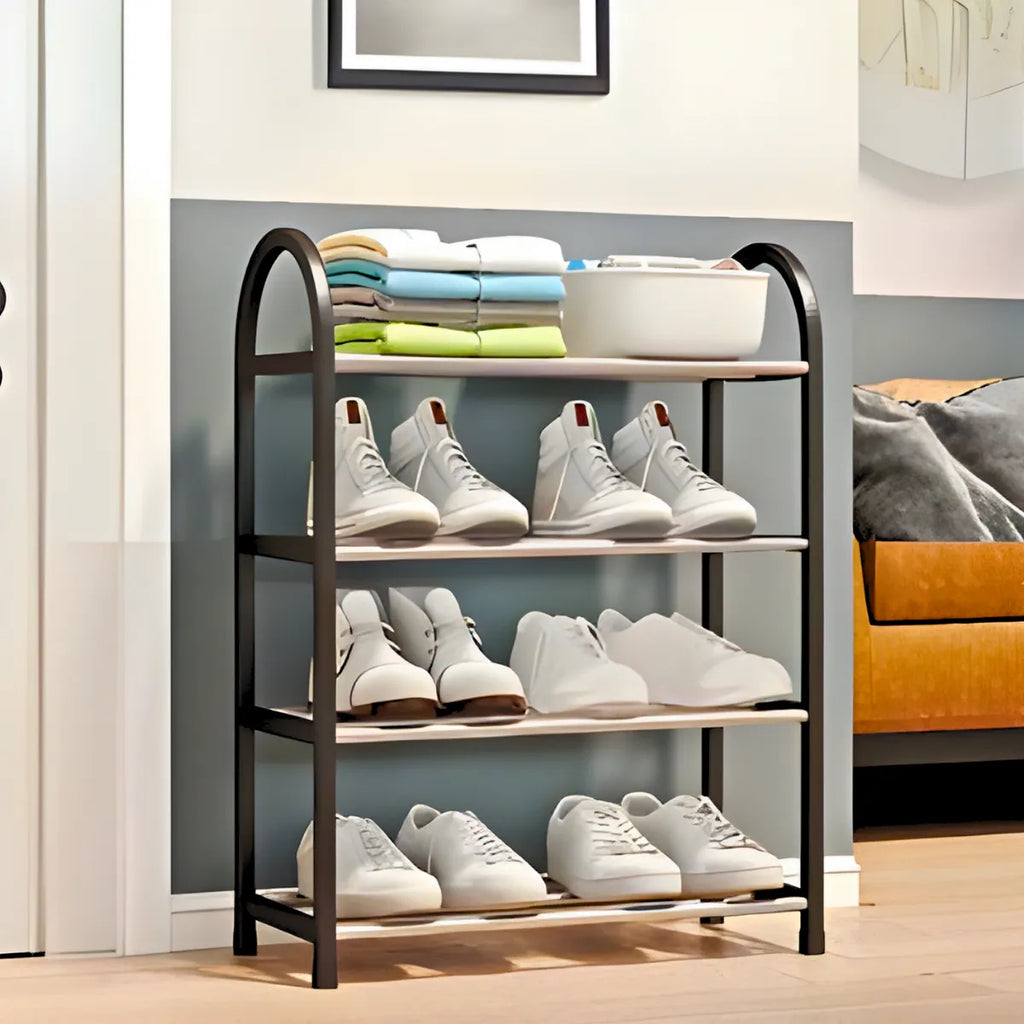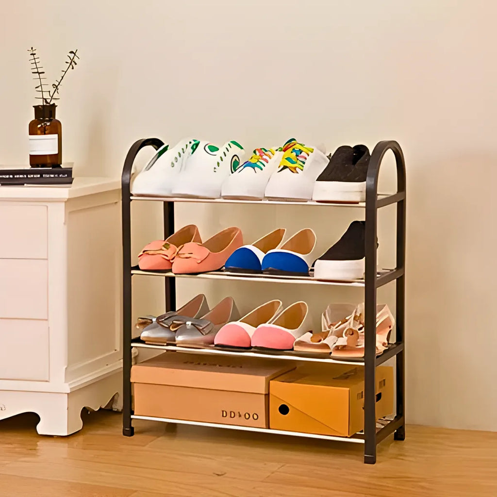 - Prateleira com 4 andares, oferecendo amplo espaço para armazenar até 8 pares de sapatos ou outros itens.